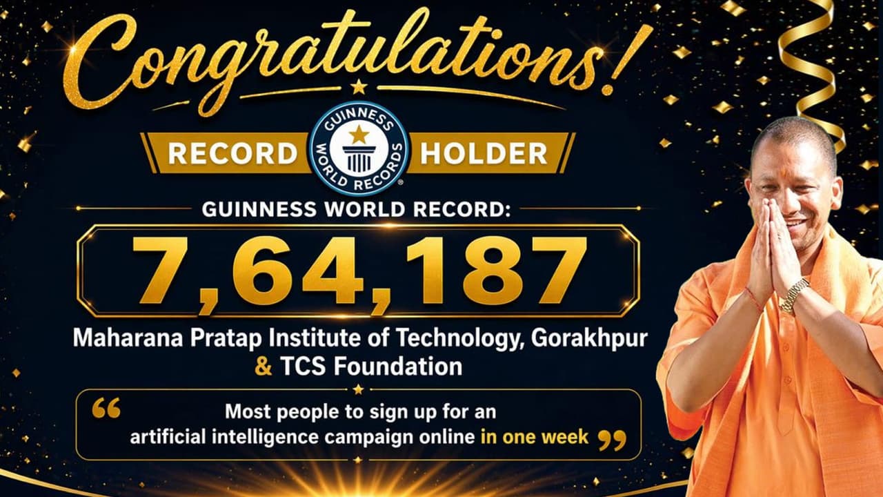 ‘AI For All’ awareness program in Gorakhpur creates Guinness World Record with 7.64 lakh online registrations in a week. This initiative started in collaboration with MPIT and TCS, with participation from multiple universities.