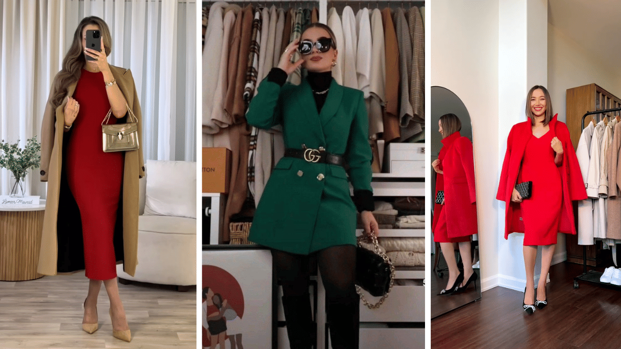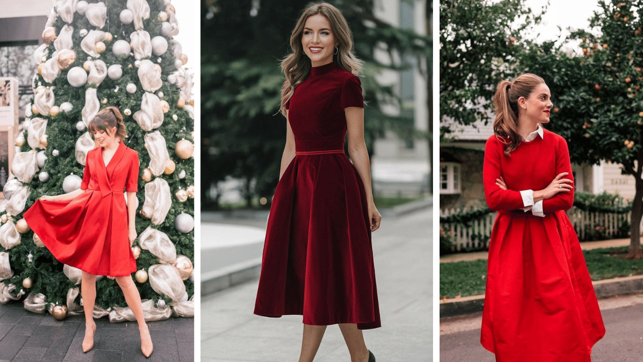A red midi dress remains the most iconic choice for Christmas outfits for women. Choose shades like ruby, wine, or cherry red for a rich festive look. Pair it with gold accessories and nude heels for a refined, office-appropriate outfit.