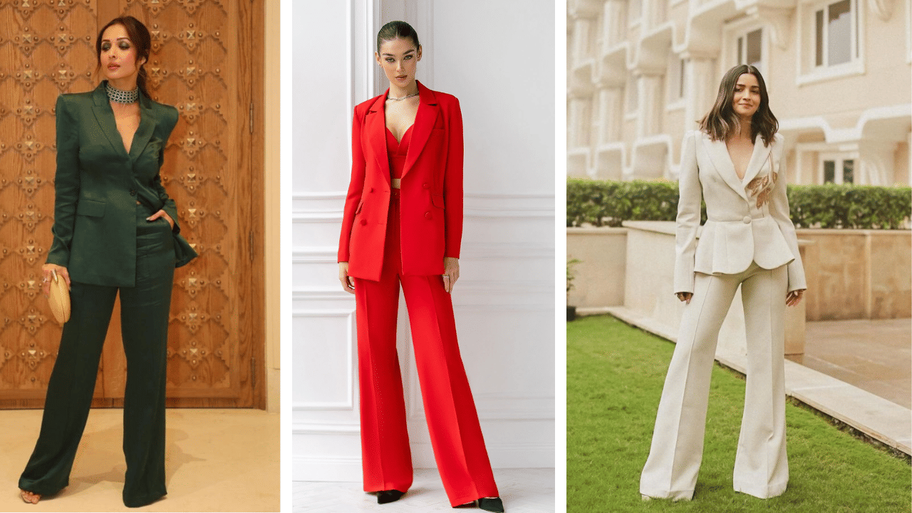 A co-ord blazer set in champagne, beige, ivory, or winter white offers a polished and modern look. These soft shades create quiet luxury while keeping the outfit professional. Perfect for formal Christmas outfits for office parties with minimal effort.