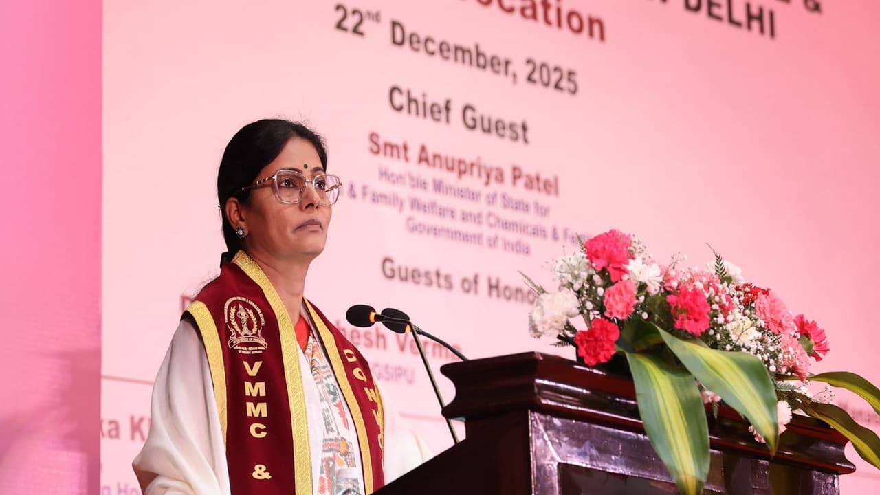 Union Minister Anupriya Patel addressed the 7th convocation of VMMC & Safdarjung Hospital, urging graduating doctors to practice with compassion and dedication, and to serve marginalised communities with a strong sense of ethical responsibility.