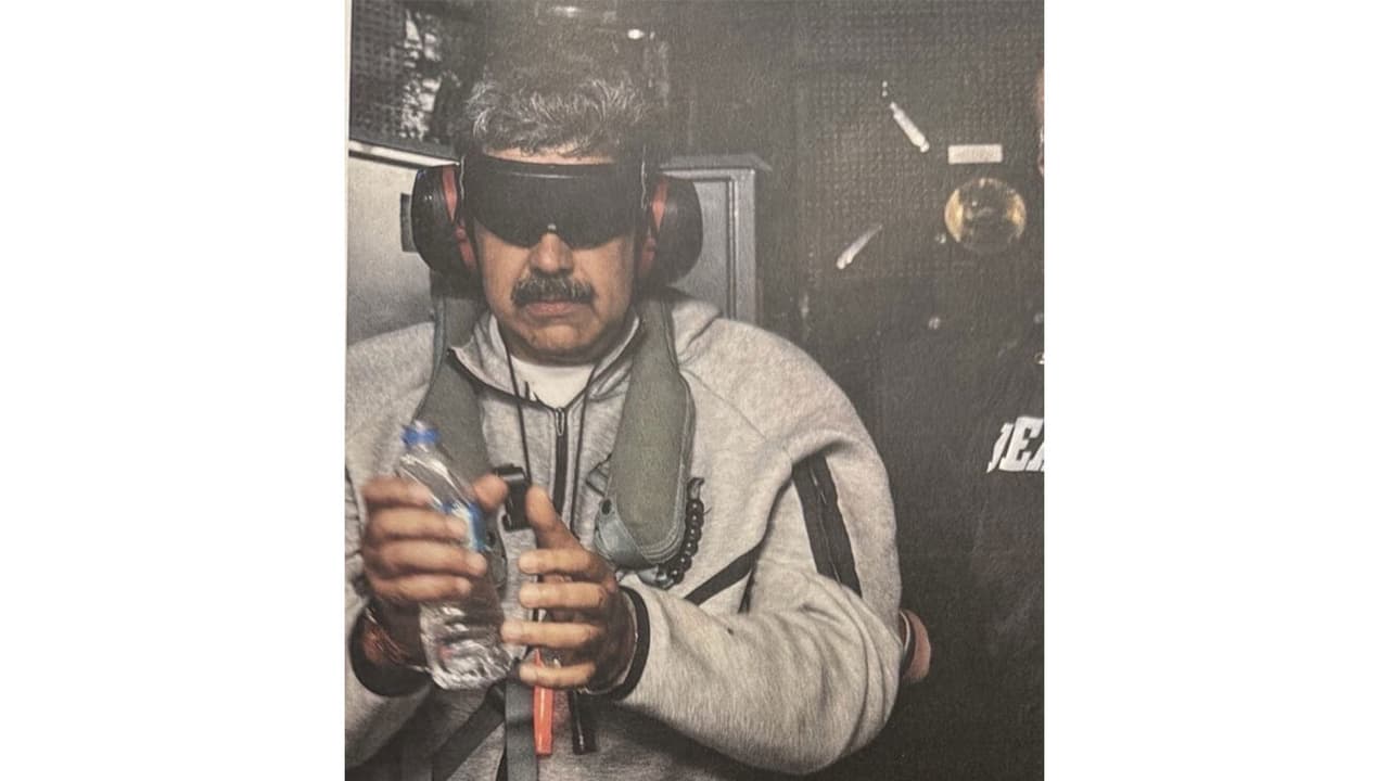 Following the operation, Trump shared an image on Truth Social showing deposed dictator Nicolas Maduro dressed in a grey sweatsuit, wearing protective headphones and a blindfold. The caption read: “Nicolas Maduro on board the USS Iwo Jima.”