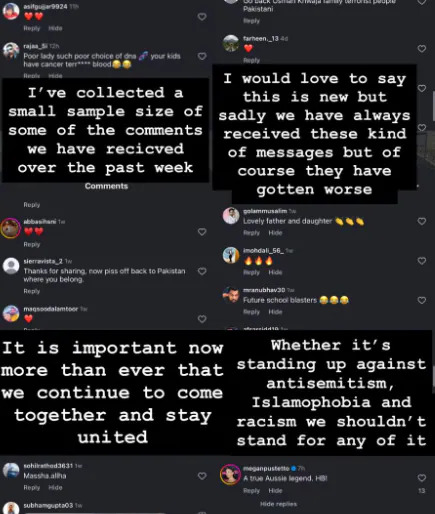 Rachel Khawaja posted that the family had received numerous offensive comments in the aftermath of the attack. “I’ve collected a small sample of some of the comments we have received over the past week,” she wrote. “I would love to say this is new, but sadly, we have always received these kinds of messages. But of course, they have gotten worse.”