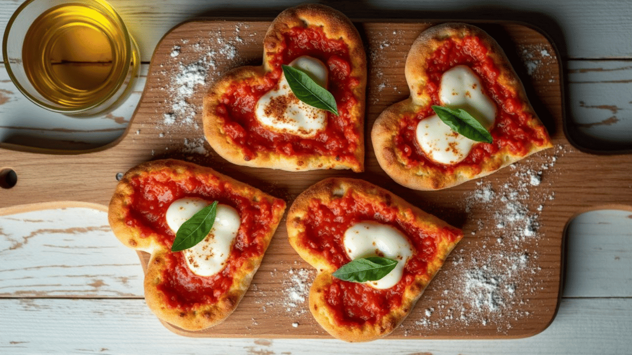 Quick recipe: Roll dough into a 12-inch circle on floured parchment. Snip a 4-inch V down the centre top; fold the sides into a heart. Top with sauce, cheese, and heart-cut pepperoni. Bake at 220°C on a tray for 12-15 minutes until golden. Slice and devour. Ready in 25 minutes.