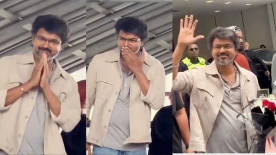 In a clip, Vijay was seen arriving near a gate as he smiled at the crowd gathered there, screaming for him. The actor waved at them and also folded his hands. He was also seen blowing a kiss and gesturing it towards the fans, who laughed and shouted. After waving his fans goodbye, he walked away.
