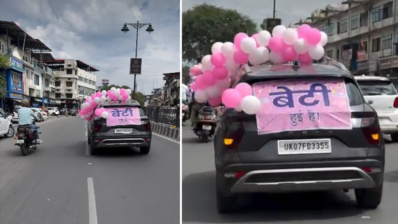 A family in Dehradun celebrated their newborn daughter’s birth with a unique public gesture. Their cars, decorated with pink balloons and a “Beti hui hai” sign, went viral online, drawing widespread praise for the heartwarming and powerful message.