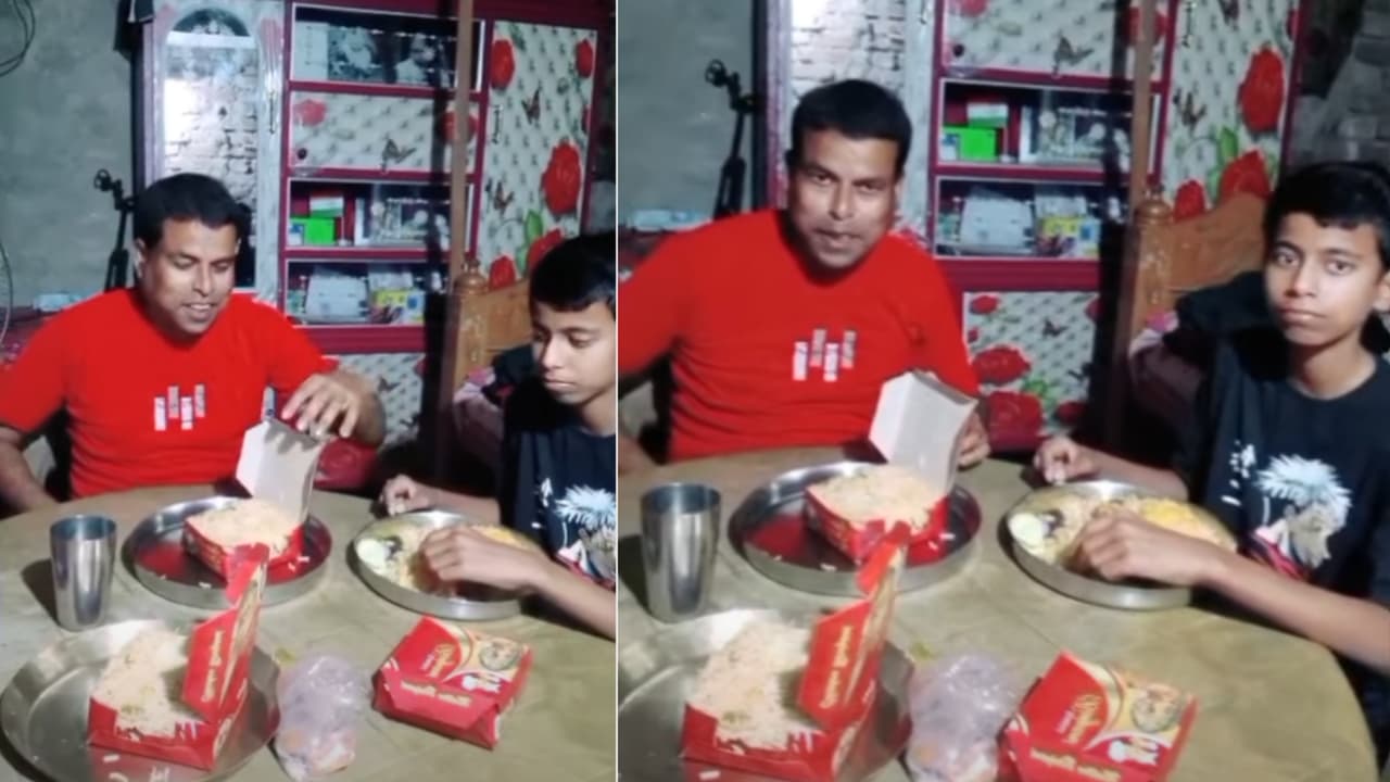 For a father, nothing is more important than the happiness of his child. A video is going viral of a father from West Bengal who, despite financial constraints, fulfills his son’s insistence of eating biryani. People are getting emotional seeing the son’s happiness and father’s peace.