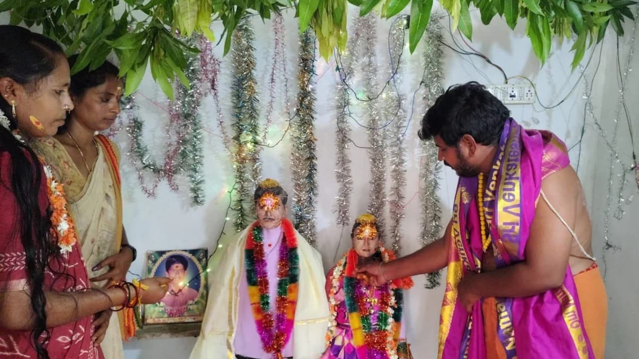 What began as a parent’s grief has now become an emotional village tradition. For 23 years, a couple in Mahabubabad, has been holding a wedding ceremony for the statues of their son Ram Koti and the girl he loved after both died in 2003 when their love marriage was opposed.… pic.twitter.com/7ISO4s3DTn