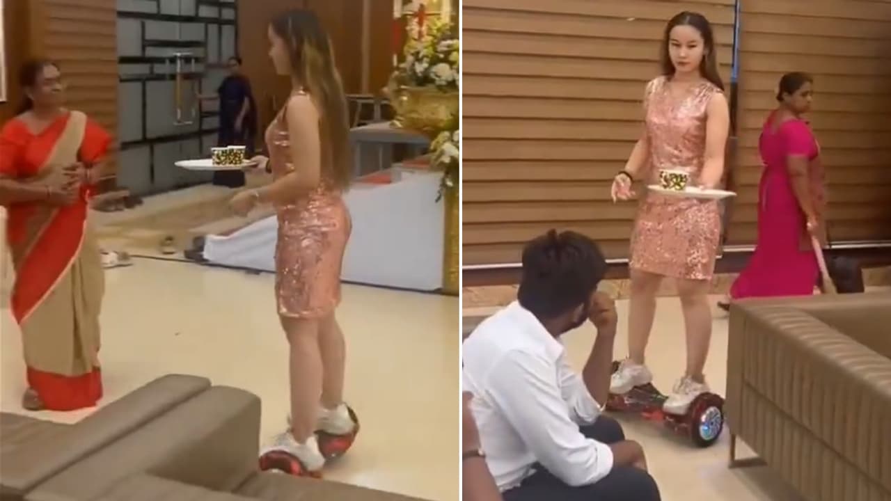 A viral video showing waitresses serving guests on hoverboards at an Indian wedding has sparked a widespread online debate. While some were amused by the modern twist, many others criticized the trend as an unnecessary display of “show over substance,” questioning the tastefulness of such gimmicks at traditional events.