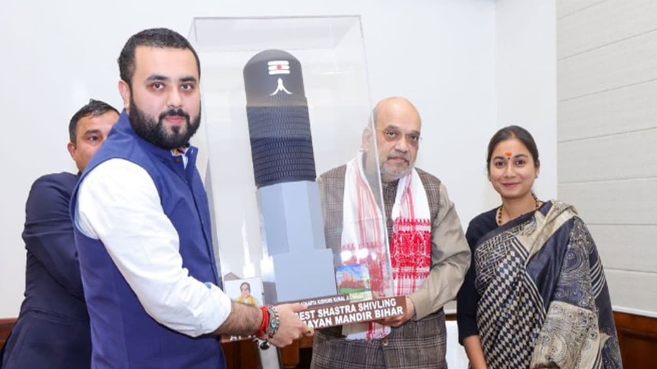Secretary of Mahavir Temple Trust, Patna, Sayan Kunal, and MP Shambhavi Choudhary presented a replica of the Sahastra Shivling to Union Home Minister Amit Shah.