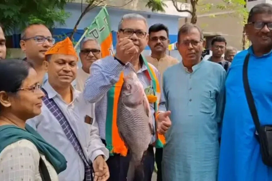 In what could easily pass off as Bengal’s most deliciously political campaign moment, BJP candidate Dr Sharadwat Mukhopadhyay decided to take on the ruling party’s narrative not with a speech, not with a rally, but with… a fish.