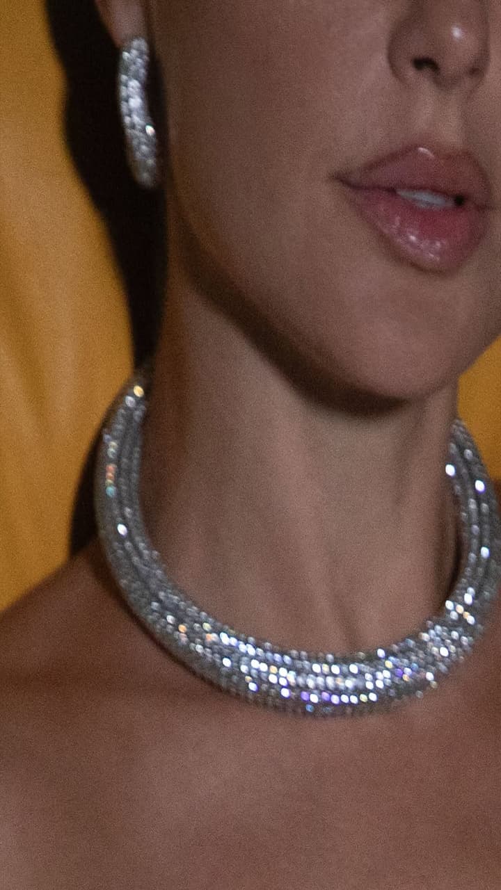 This golden layered statement necklace is designed in petal like design, which gives a very royal and bold look. This necklace gives a glamorous and classic touch to an off-shoulder dress.
