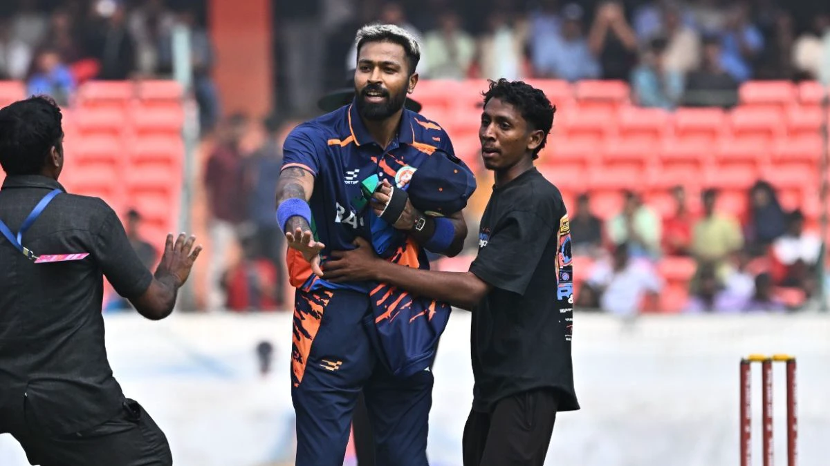 During a Syed Mushtaq Ali Trophy match between Baroda and Punjab on December 2, a spectator rushed onto the field and took a selfie with Hardik Pandya. The viral incident occurred in the first innings at Hyderabad’s Rajiv Gandhi International Stadium.