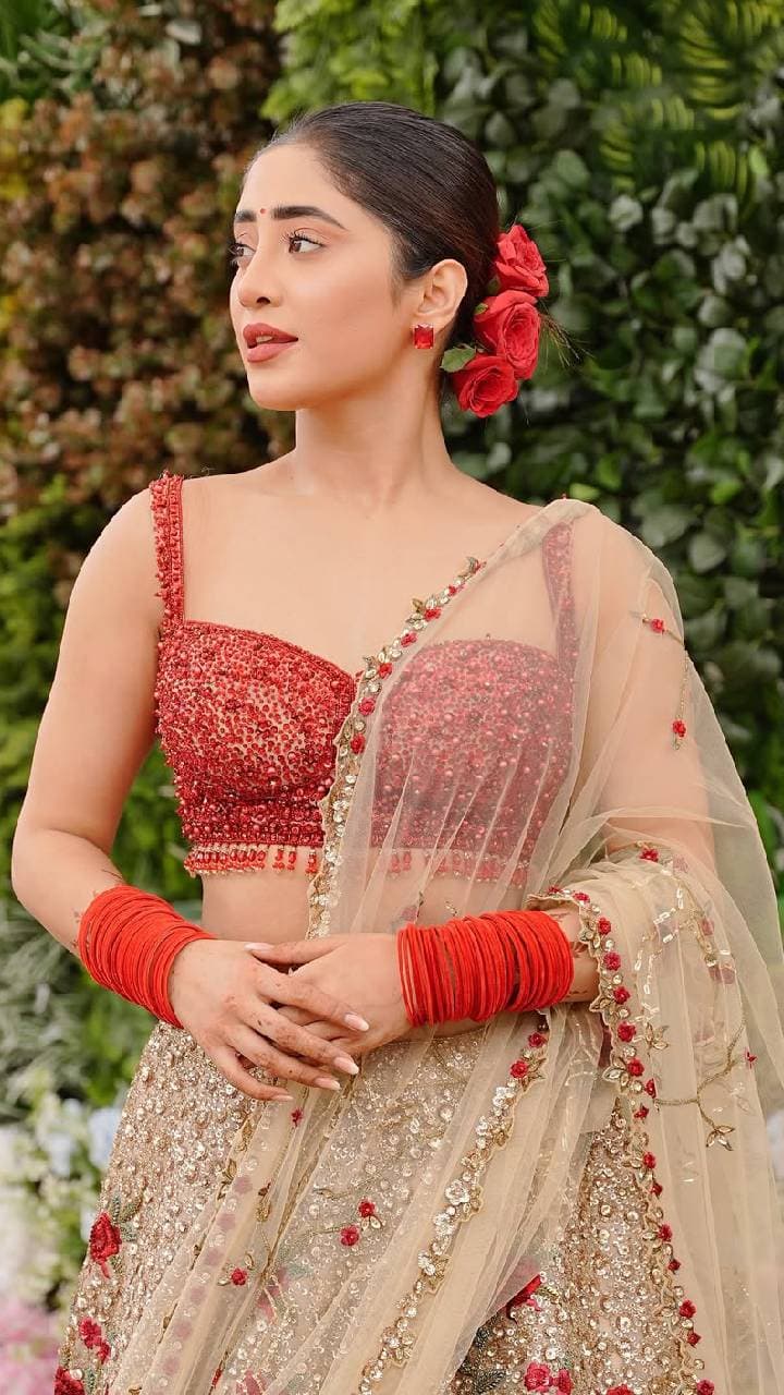 If you are pairing a blue lehenga in Diwali, then adorn yourself with a pink mirror work blouse. Whether the lehenga is embroidered or printed, the contrasting color of the blouse will look good on it.