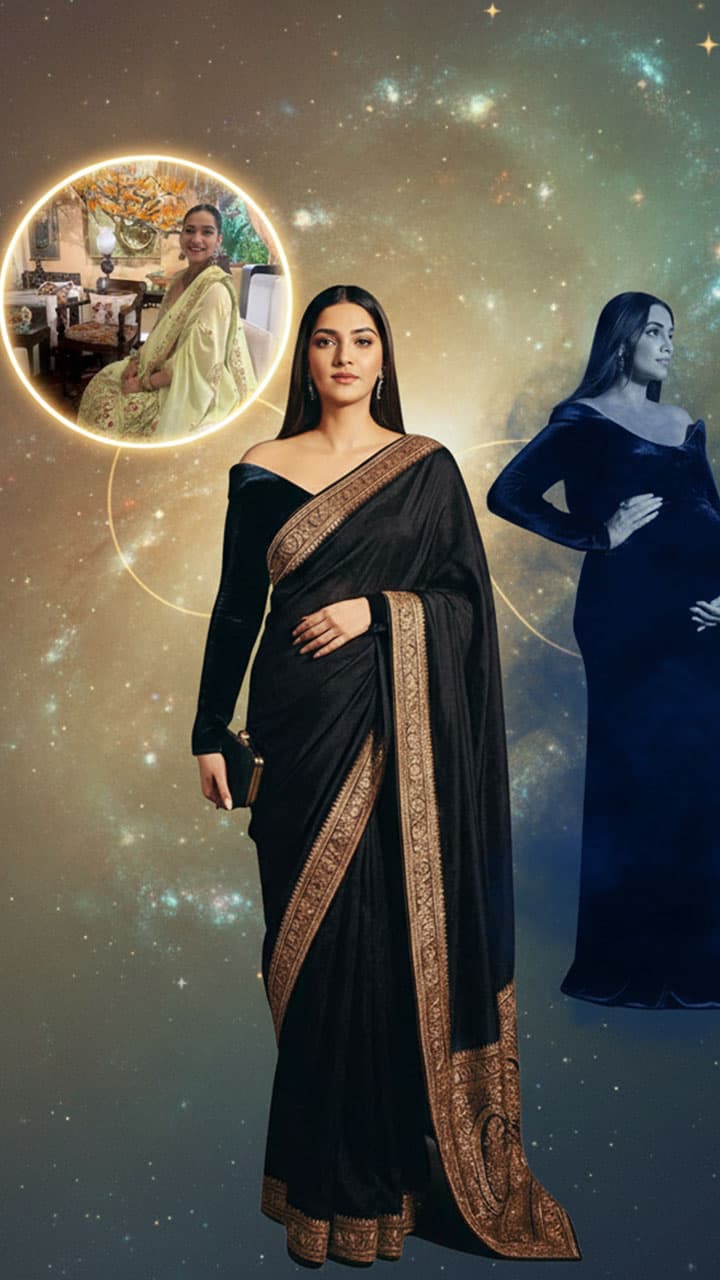 Sonam Kapoor wore a lime green colored lehenga with all over floral hand work at her baby shower. With this she wore half sleeves blouse and border work chunni.