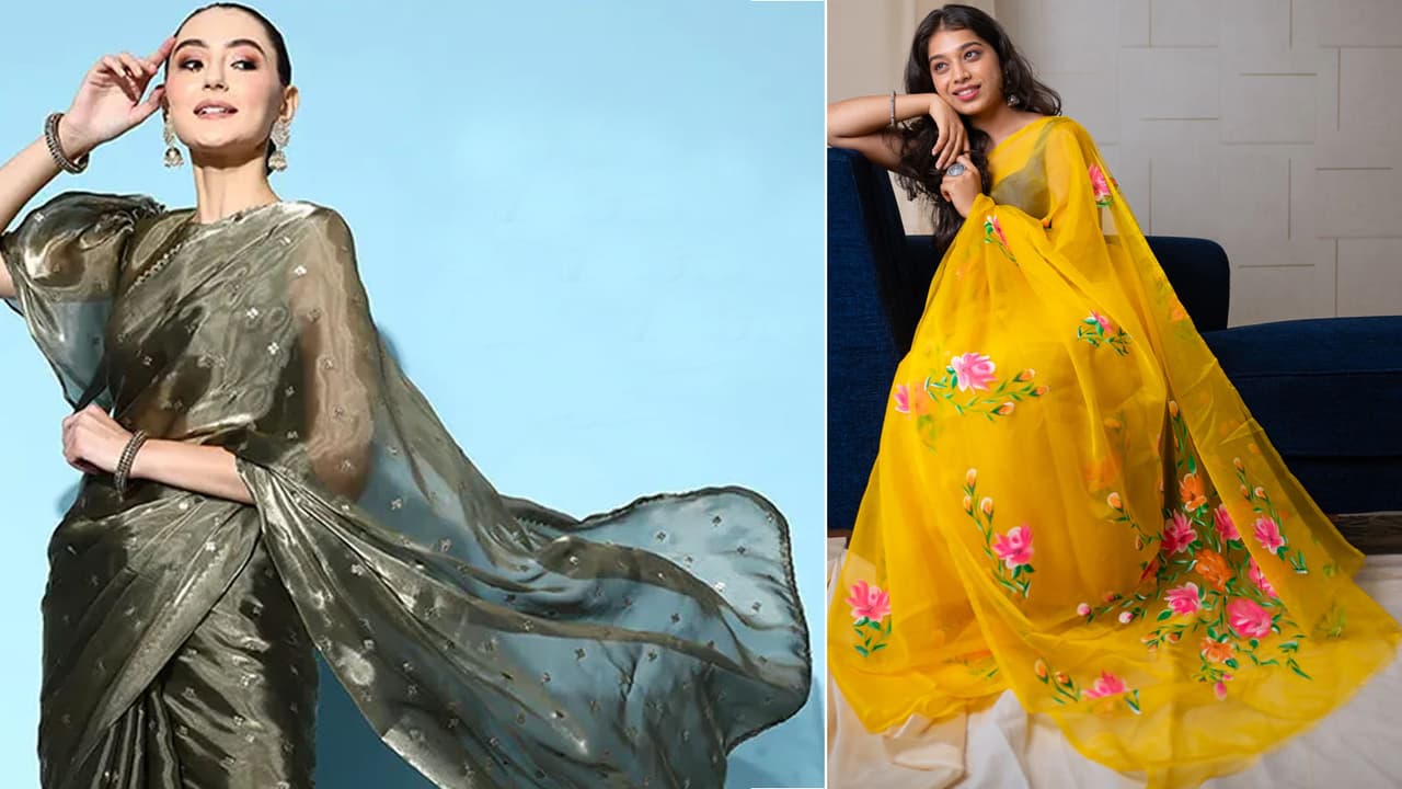 Easy To Wear Organza Saree Designs For Ahoi Ashtami: If you want to look comfortable and elegant throughout the day along with puja, then organza saree will be perfect for you. See here 5 trendy and comfortable designs of organza sarees.