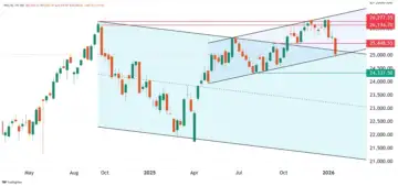 Key events in focus: On Wednesday, the Federal Open Market Committee will announce its monetary policy decision. Anticipation for this FOMC meeting is muted, as the central bank is widely expected to keep the federal funds rate unchanged. However, Wall Street will be focusing on the press conference from Jerome Powell in his final months as Fed Chair for clues as to how long the Federal Reserve intends to keep rates on hold.