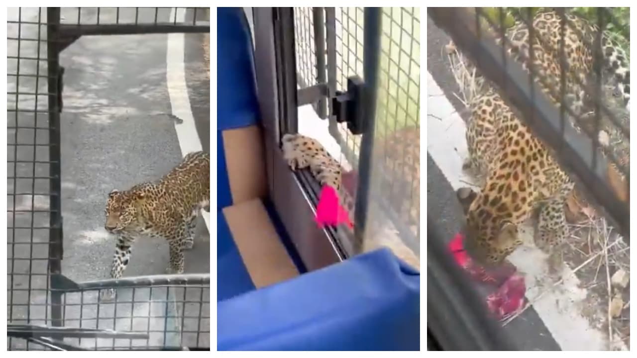A leopard attacked the bus during safari in Bannerghatta National Park, Karnataka. The leopard injured a 50-year-old woman by clawing through a latticed window. After the video of this incident went viral, questions are being raised on security.