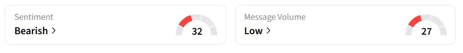 NVTS’s Sentiment Meter and Message Volume as of 10:45 a.m. ET on Nov. 20, 2025 | Source: Stocktwits