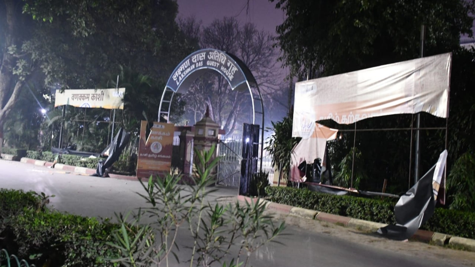 So far, more than 100 people are said to be injured in this fight, which includes 50 students, 40 security personnel and more than 10 policemen. The condition of many students is critical and they have been admitted to the trauma center. Bricks and stones were found scattered on the road for half a kilometer and more than 10 pots, chairs and vehicles were broken. Two big posters of Tamil Sangamam bearing “Vanakkam Kasi” were also torn down.