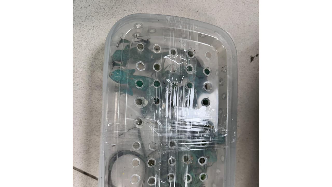 During the examination of the passenger’s two check-in bags, officers recovered a large number of exotic wildlife species that were concealed inside plastic containers and small bags. The seized animals included 32 Albino Red-Eared Slider Turtles, 3 Albino Raccoons, and 13 Green Iguanas, of which one iguana was found dead, as stated in the release.