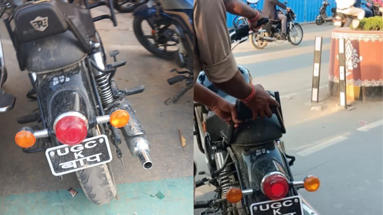This case is of Cantt police station area of Varanasi. The police was doing regular vehicle checking in front of the court, Golambar and Vikas Bhawan. Meanwhile, his eyes fell on a Bullet motorcycle, on which neither there was a number plate nor any valid identification was visible. The most surprising thing was when the police read the sentence written on the bike. “Father of UGC” was written on the back of the bike. Seeing such a bike parked in the administrative area, the police decided to take immediate action.