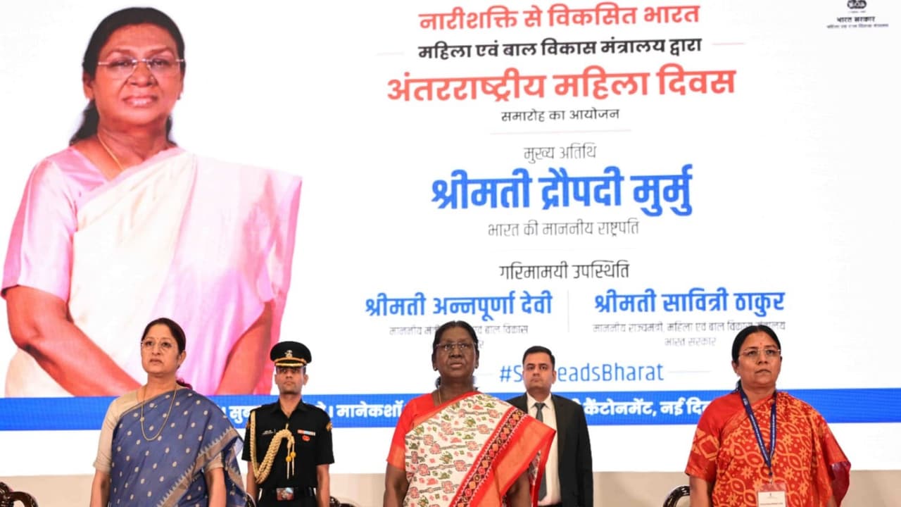 President Droupadi Murmu graced the event organised by the Union Ministry of Women and Child Development in New Delhi on Sunday on the occasion of International Women’s Day. This national-level event was organised to celebrate the achievements and contributions of women across diverse fields and reaffirm the collective commitment towards gender equality, safety, dignity and empowerment of women, a release said.