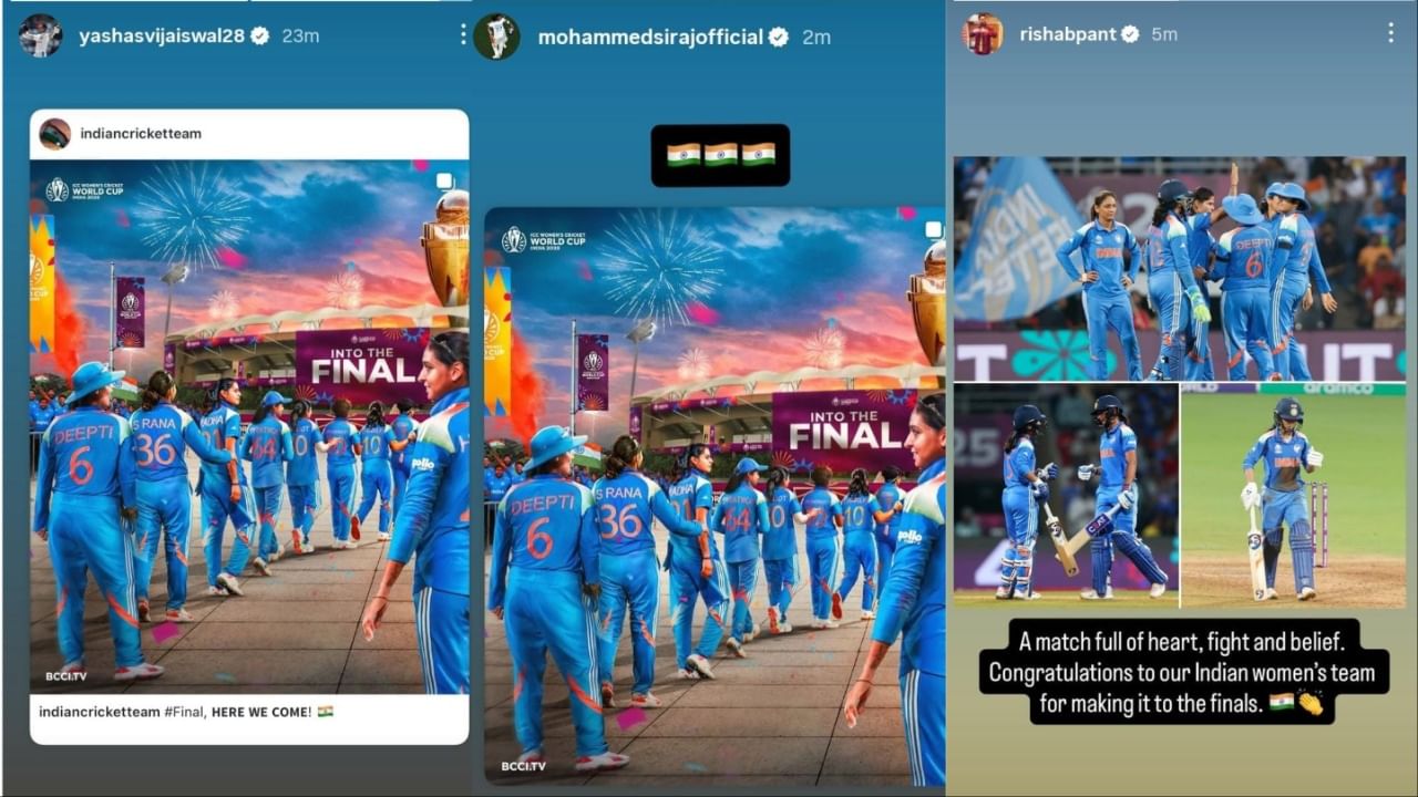 वर्ल्ड कप के फाइनल में महिला टीम के पहुंचने पर खुशी जाहिऱ करने वाले ये तो वो खिलाड़ी हो गए, जो इस वक्त ऑस्ट्रेलिाय दौरे पर मौजूद हैं. इनके अलावा जो ऑस्ट्रेलिया दौरे पर खेली जा रही T20 सीरीज का हिस्सा नहीं हैं, उन खिलाड़ियों की खुशी भी महिला टीम के सेमीफाइनल जीतने पर देखते बनीं. उन खिलाड़ियों में ऋषभ पंत, यशस्वी जायसवाल, मोहम्मद सिराज जैसे बड़े नाम रहे.
