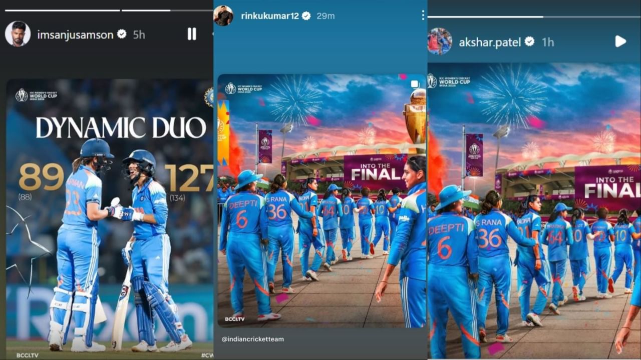 सूर्यकुमार यादव ने तो एक कदम आगे जाकर फाइनल के लिए शुभकामनाएं भी दे डाली. सूर्यकुमार यादव ने लिखा- क्या शानदार टीम है. ऐसे ही फाइनल भी जीतो. मेरी शुभकामनाएं. आइए जानते हैं कि बाकी और खिलाड़ियों ने महिला टीम की बेमिसाल जीत पर क्या कुछ लिखा और शेयर किया. वैसे ज्यादातर खिलाड़ियों के महिला टीम की जीत पर अपनी खुशी जाहिर करने का अंदाज और मिजाज एक जैसा ही रहा.