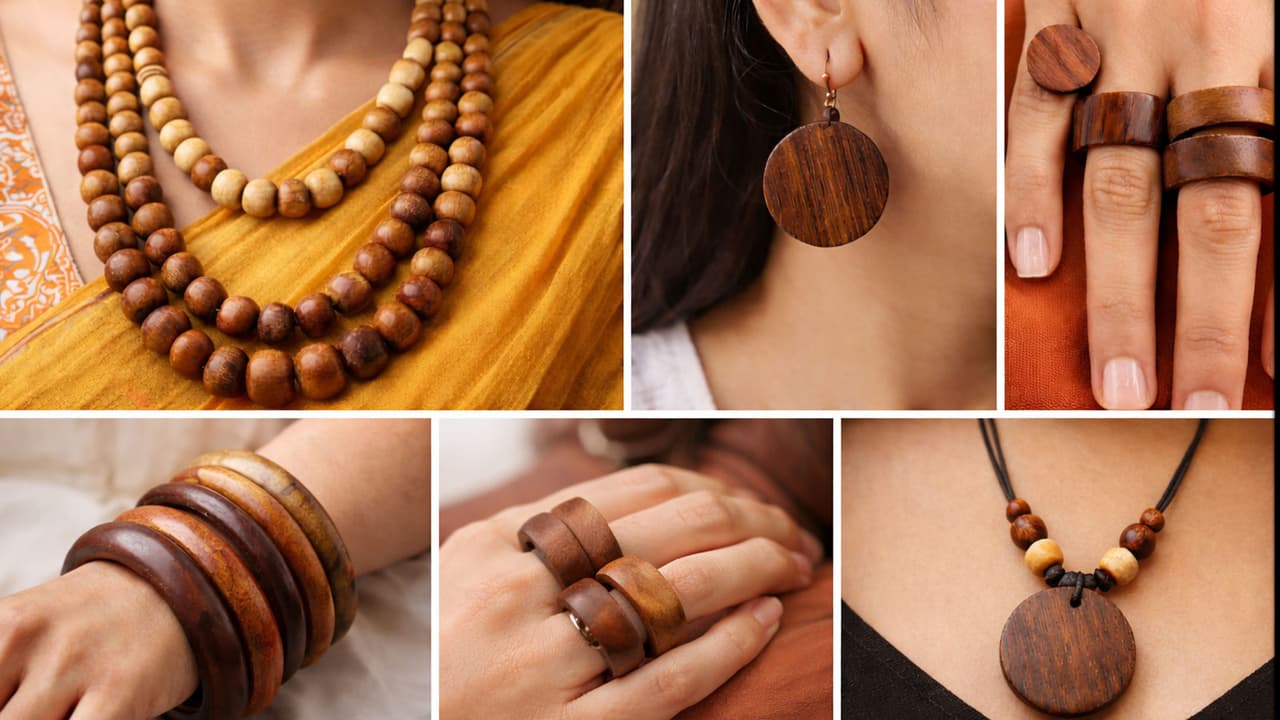 Wooden Jewellery: Adopt trendy wooden jewelery instead of expensive gold and silver. Learn how to wear necklaces, earrings, bangles and rings with cotton sarees and kurtis and get a stylish, eco-friendly look.