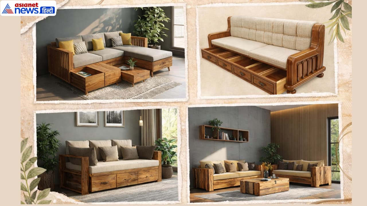 Wooden Sofa Set with Storage: The beauty of the living room is considered incomplete without wooden sofa design. Apart from looking classic, it also provides strength. Nowadays high quality Sheesham or teak wood sofas are being preferred. Their design gives artistic style to every piece, however, with time there is a lot of space problem in urban houses. Therefore, the demand for such home decor items has increased, which occupy less space and are also best in storage, hence we have brought the latest patterns of wooden sofa with storage which can be chosen from hall to balcony and room.