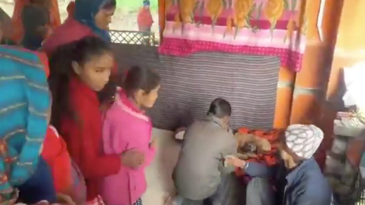 In the viral footage, it can be seen that a blanket is spread in a corner of the temple complex, on which the dog is sitting comfortably. Milk is kept in a vessel nearby. There is a person sitting near the dog, who pretends to be a Mahant and prevents the people coming for darshan from touching the dog. Women, children and villagers are seen standing in queues, bowing their heads in front of the dog and touching its feet.