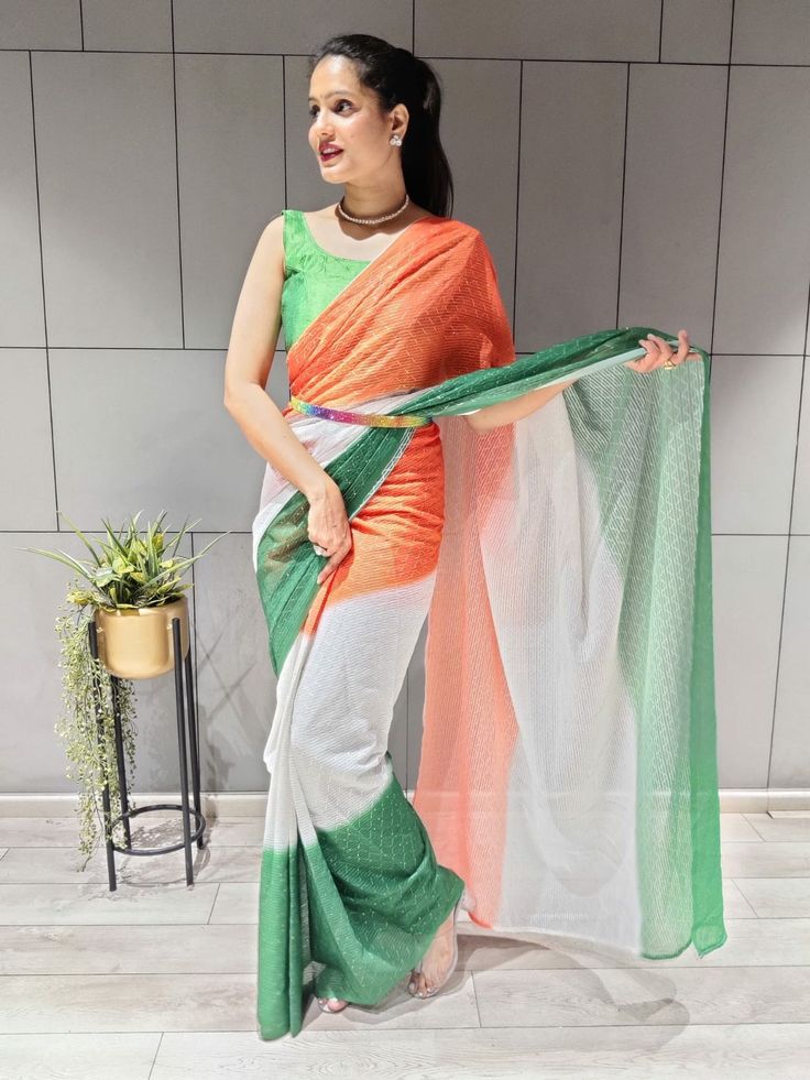 Saree styling for Republic Day highlights simplicity, culture, and tricolour inspiration. From lightweight cottons to silk and organza, the curated styles below make your look meaningful and contemporary. Borders, prints, and accessories add subtle polish, completing an ensemble that balances elegance with patriotic spirit, making it ideal for any Republic Day celebration.