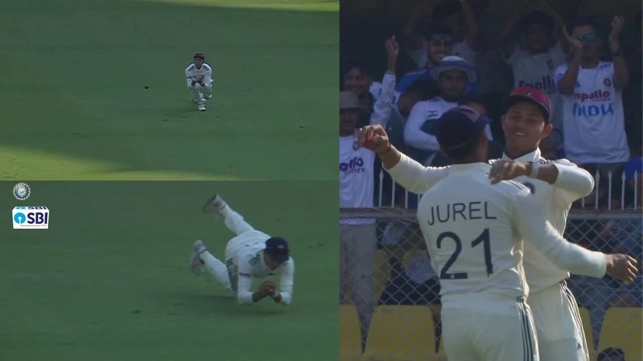 Yashasvi Jaiswal pulls off a diving catch as Ravindra Jadeja removes Temba Bavuma