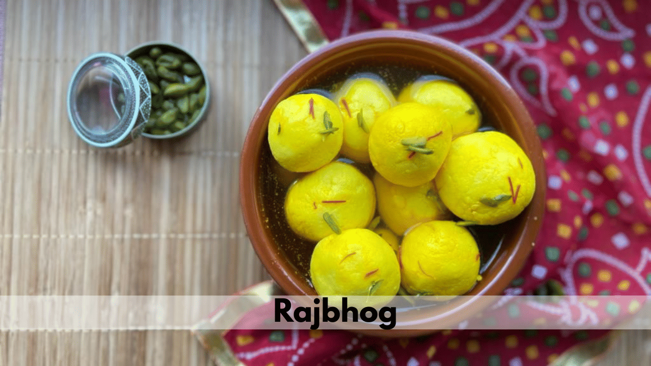 4. Rajbhog (Saffron Rasgulla)