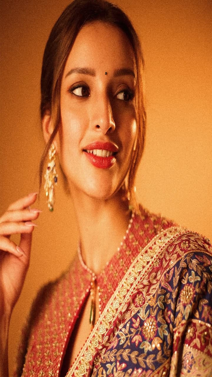 Too heavy makeup does not look good with black saree. You do subtle makeup like Tripti. Complete the look with brown lipstick, light smokey eyes and a black bindi on the forehead.