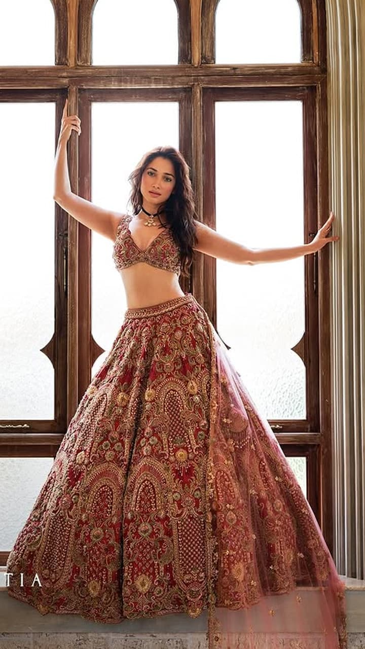 If you want that everyone should look at you in the gathering, then you can choose black lehenga. This lehenga of Tamanna has golden zari work, which is complementing the black color.