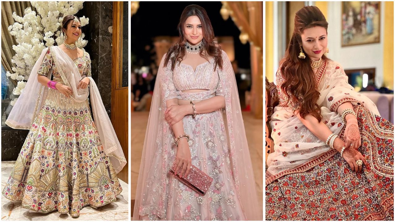 Divyanka Tripathi is wearing a heavy lehenga with embroidery work. Also the dupatta is styled in contrast. She has made her look classy with heavy choker style necklace, puff hairstyle, makeup and bangles. You can also take ideas from this look of the actress for your brother or sister’s wedding, which will give you a royal look. (Credit: divyankatripathidahiya)