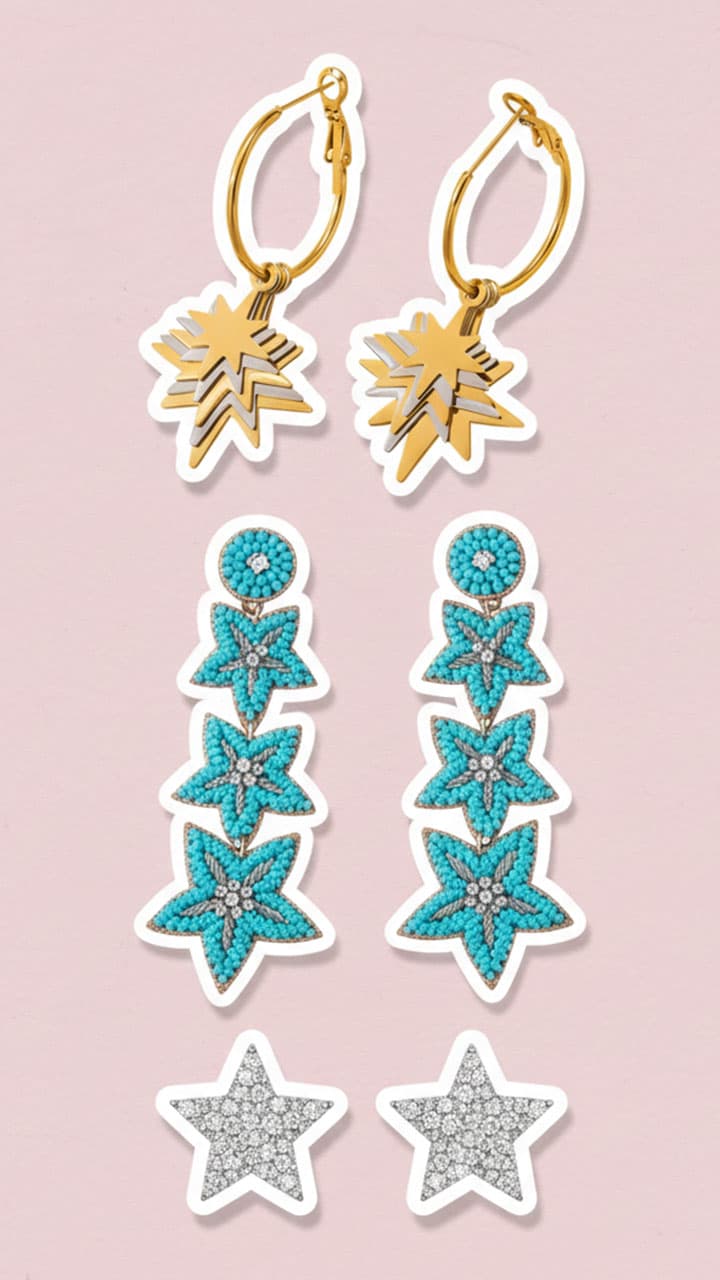 If you like wearing long earrings, then you can also make such long dangler shape earrings using small to big stars, on which beads are worked.